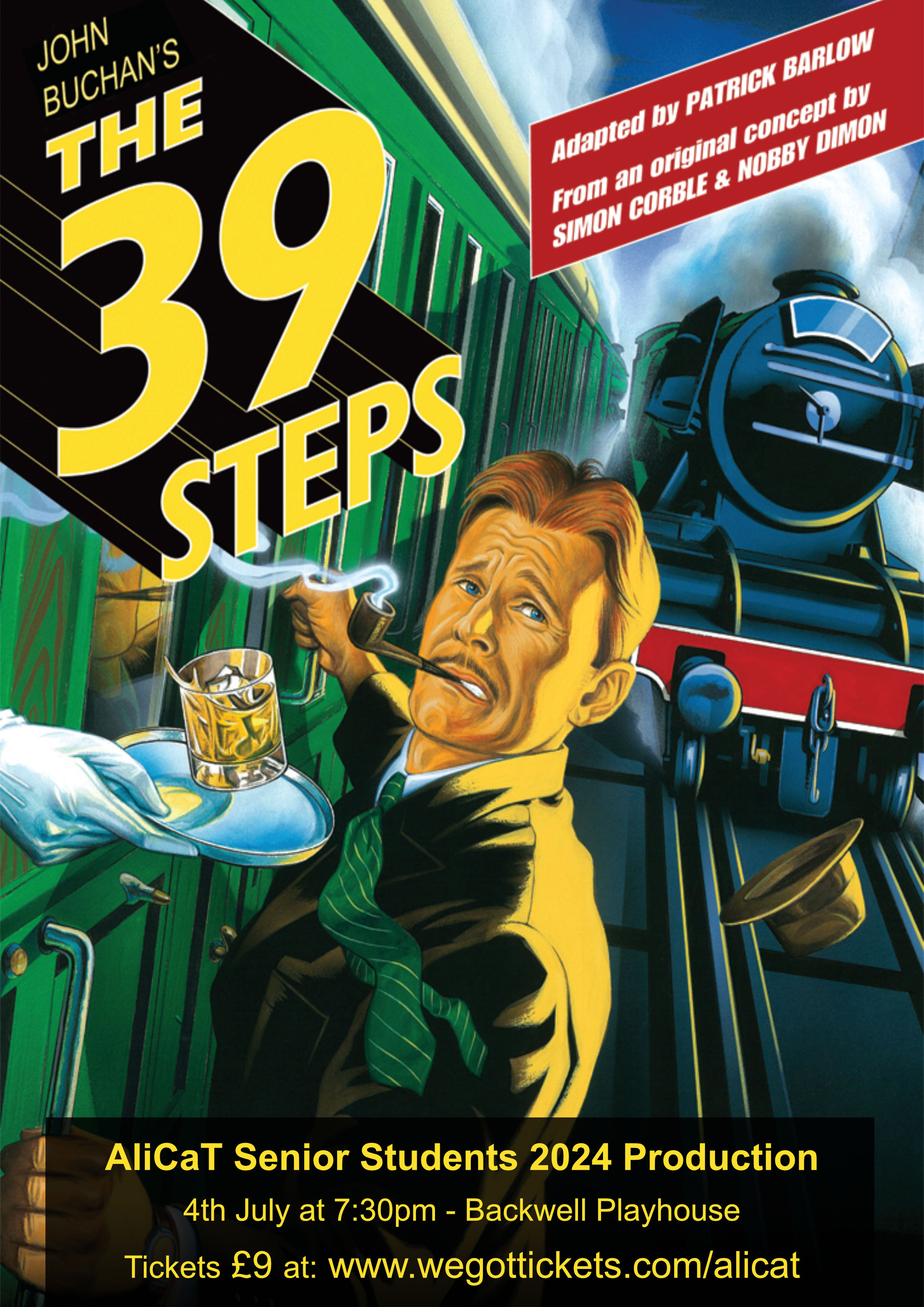 | AliCaT Children and Theatre presents | John Buchan’s The 39 Steps | Thursday 04 Jul 2024 | Performance Time: 19:30 | Box Office: Tickets available from WeGotTickets.com/alicat | Tickets: £9 (plus booking fee) | Mix a Hitchcock masterpiece with a juicy spy novel, add a dash of Monty Python and you have The 39 Steps, a fast-paced whodunit for anyone who loves the magic of theatre! This two-time Tony and Drama Desk Award-winning treat is packed with nonstop laughs, dozens of zany characters (played by a cast of eight), an onstage plane crash, handcuffs, missing fingers, and some good old-fashioned romance! Come and see for yourself! The 39 Steps