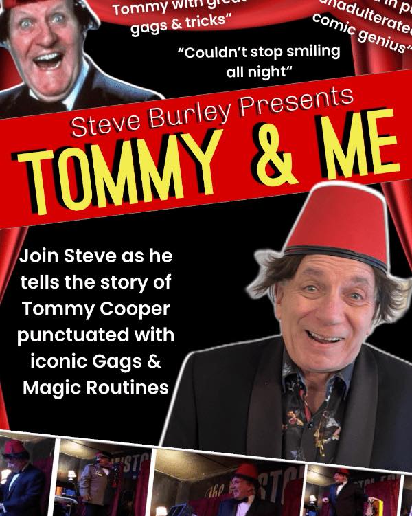| Steve Burley presents | Tommy & Me | Friday 25 Oct 2024 | Performance Time: 20:00 | Box Office: Tickets available from Ticket Source | Tickets: £12 | A live show. The Tommy Cooper Story. Punctuated with iconic gags & magic routines. Amazingly funny, informative and beautifully told. A must for all Tommy fans.