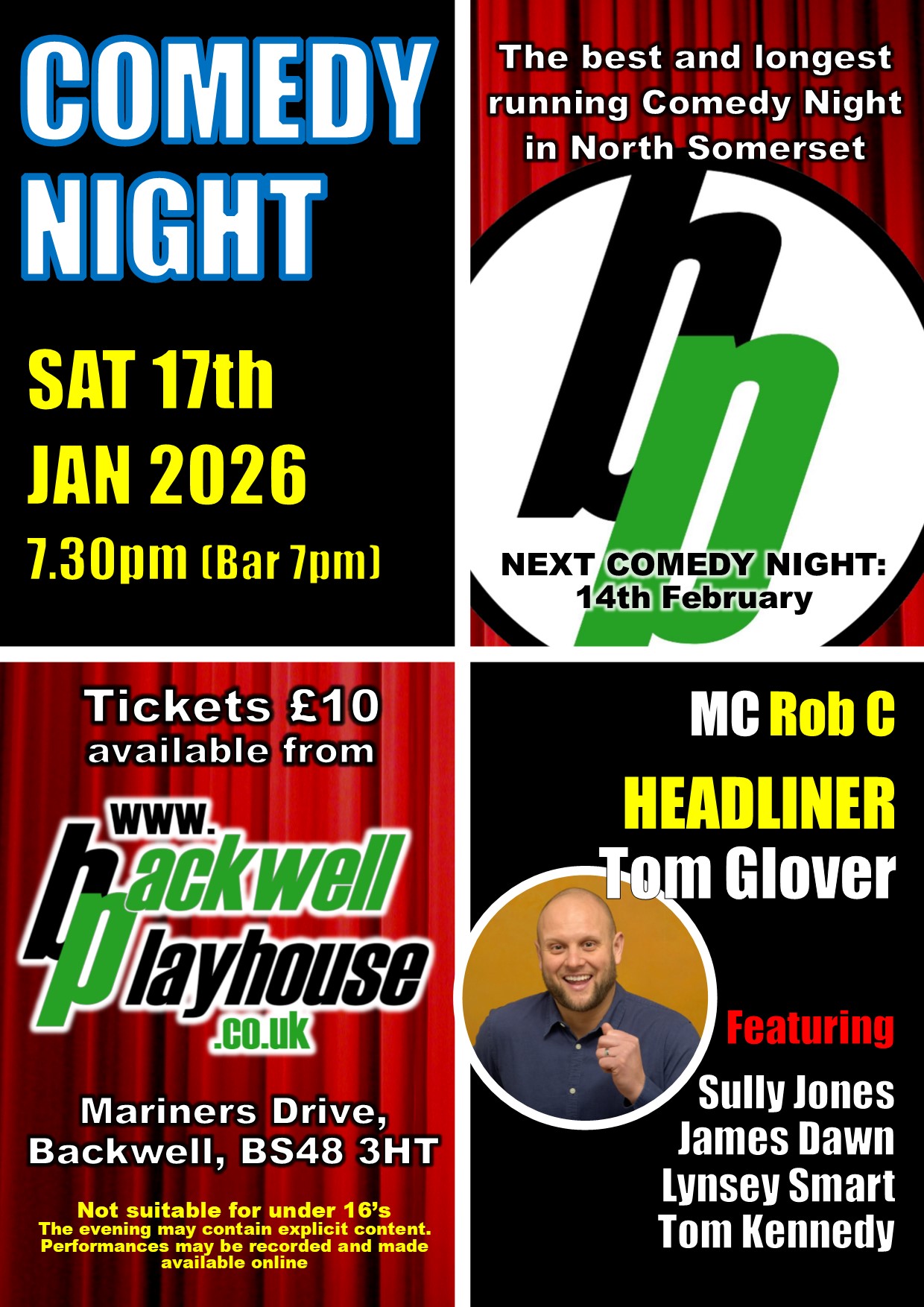 | The Playhouse presents | Comedy Night | Saturday 17 Jan 2026 | Performance Time: 19:30 | Box Office: Tickets available from our shop: Backwell Playhouse Ticket Shop