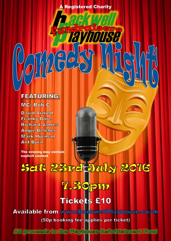 | Backwell Playhouse Fundraisers presents | Comedy Night | Saturday 23 Jul 2016 | Performance Time: 19:30 | Box Office: on-line only