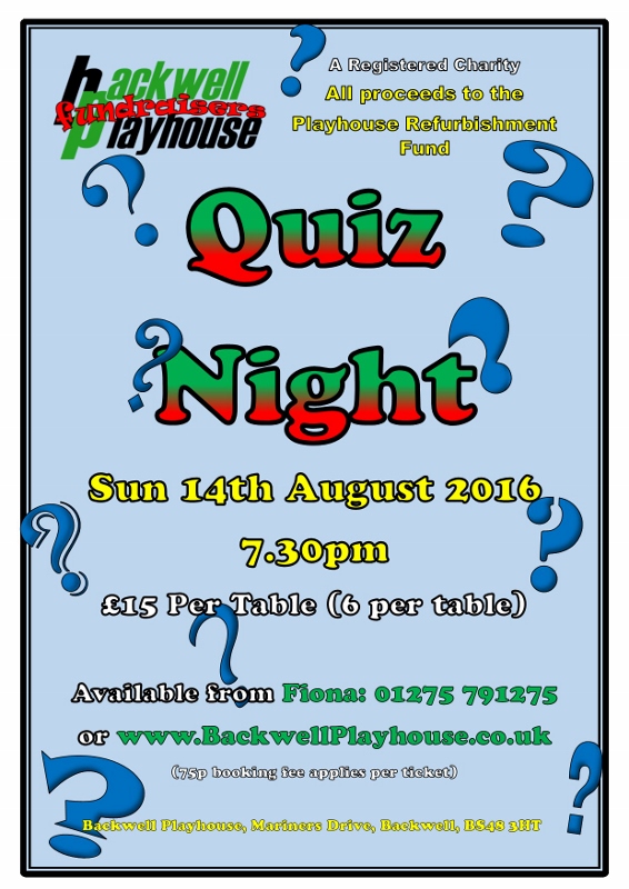 | Backwell Playhouse Fundraisers presents | Playhouse Quiz Night Postponed until further notice