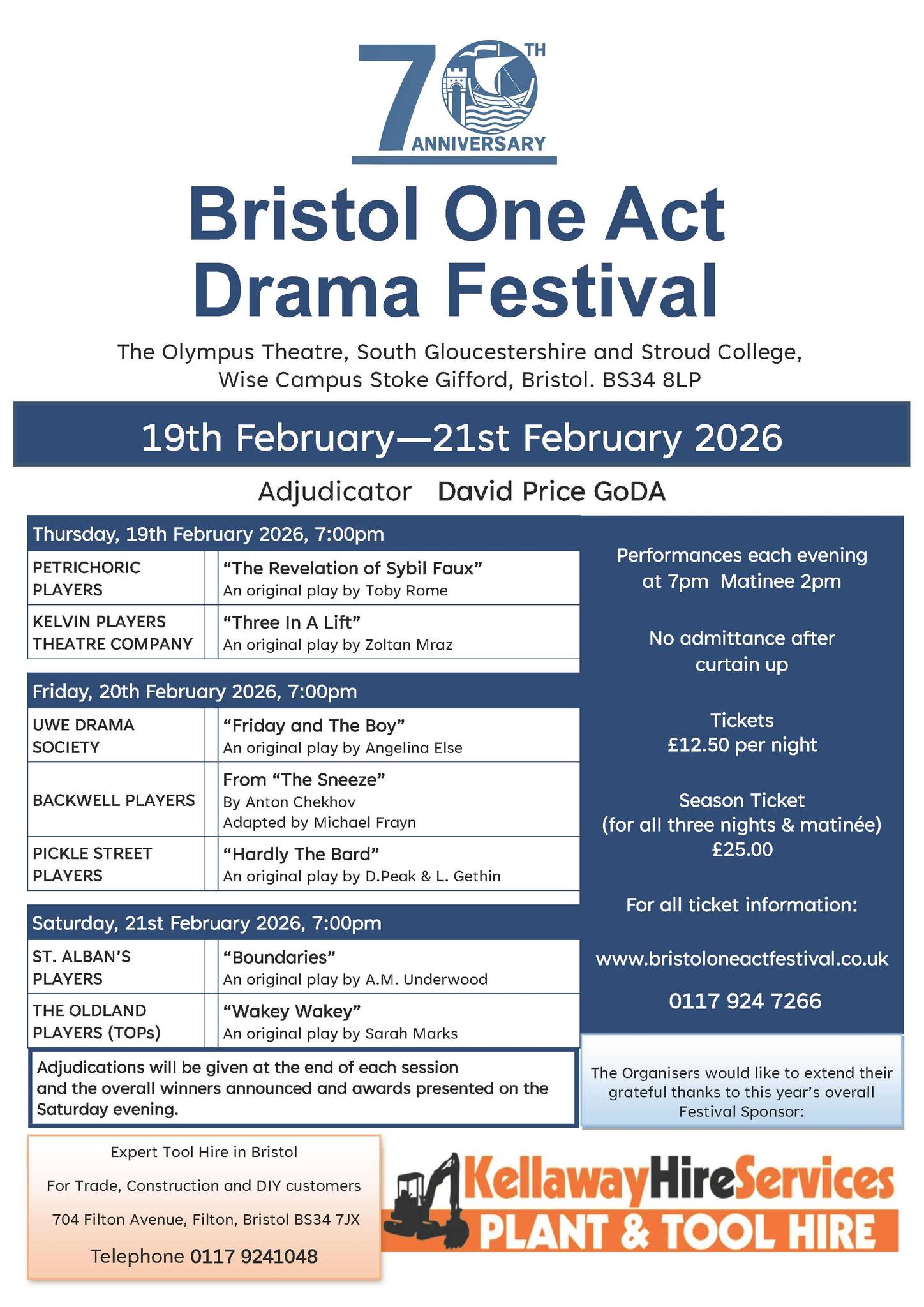 | Bristol One Act Festival presents | Backwell Playhouse Competition Entry: The Sneeze | Friday 20 Feb 2026 | Performance Time: 19:30 | Box Office: Tickets available from our shop: Backwell Playhouse Ticket Shop